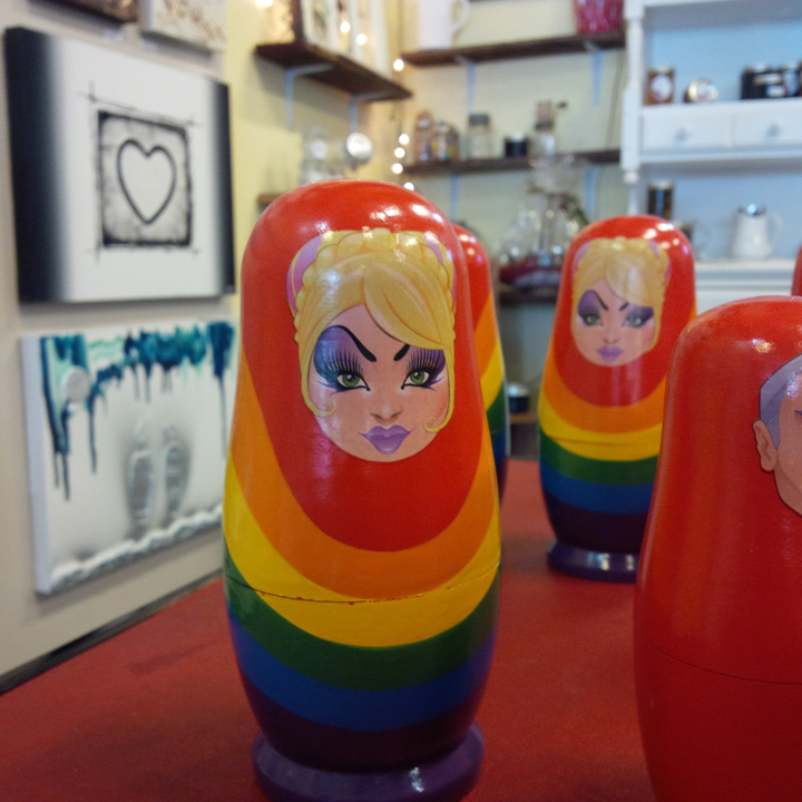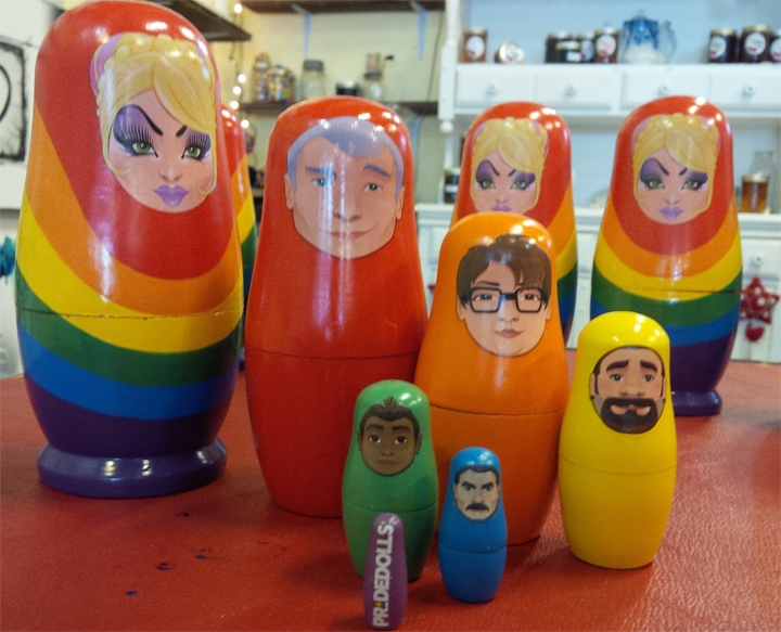 “The bar actually had these matryoshka dolls, a whole bunch of different sets of them, and I thought ‘wouldn’t it be great if someone created an LGBT themed version.’ Sort of as a throwback to Russia,” he said. “Everyone thought it was a great idea, so I thought you know what might as well act on it.”