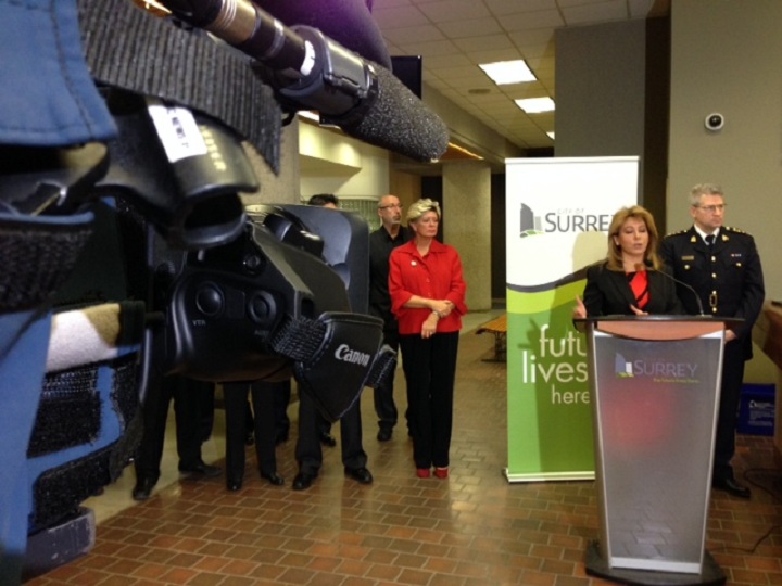 “I want to ensure the people of Surrey that we will continue to confront and disrupt criminal behaviour in our city,” Surrey Mayor Dianne Watts told reporters. “… and we will be sending the message, as we always have, that criminals are not welcome here.”