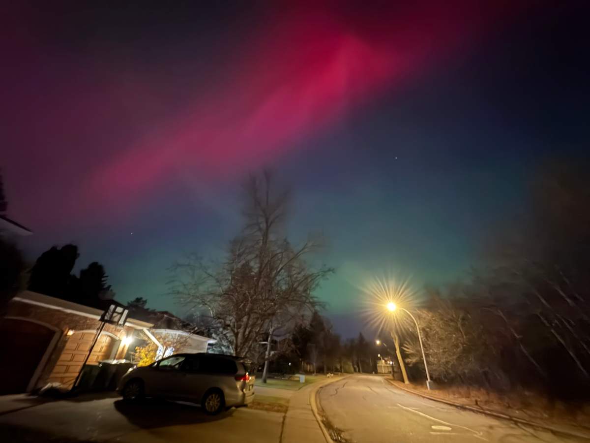 In Alberta, a red aurora borealis dazzled viewers with its red hues in places like Hanna and Airdrie.
