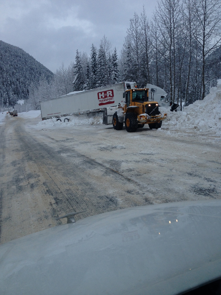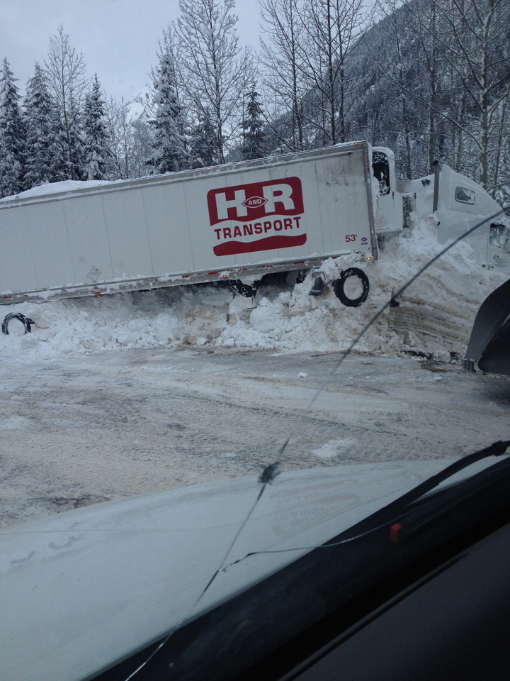The snow came down on Highway 1 late Friday night on to a commercial vehicle. The man driving managed to escape, only suffering minor injuries. He is expected to make a full recovery.