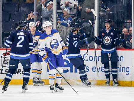 Winnipeg’s top line appeared to put the game on ice with 6:36 remaining. A point shot from Neal Pionk went well wide and ricocheted off the end boards, right to the stick of Scheifele on the other side of the net. He banked it in off the skate of Luukkonen, but after a challenge by Buffalo, the goal was called back because Scheifele had been offside by a whisker 21 seconds before the goal was scored.