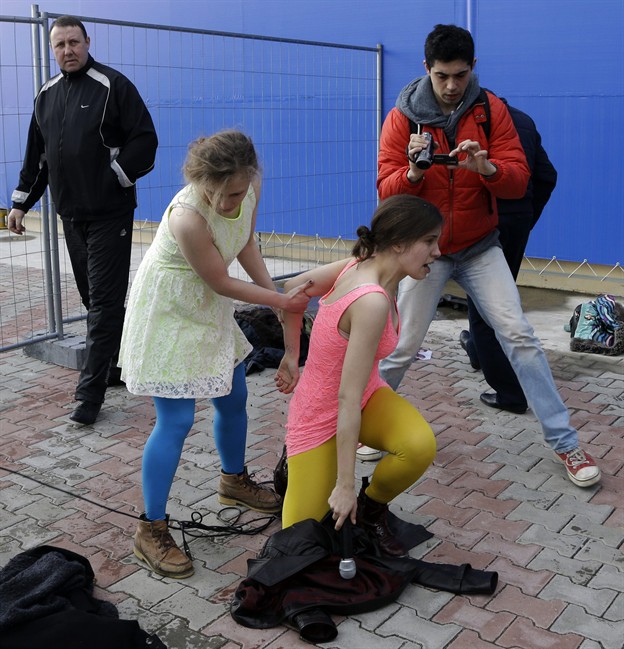 On Wednesday, Cossack militia attacked the group with horsewhips as they tried to perform under a sign advertising the Sochi Olympics.