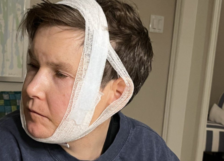She said Chris’s wound was partially closed with stitches and the open part needs to be packed with gauze on a daily basis, likely for another month.