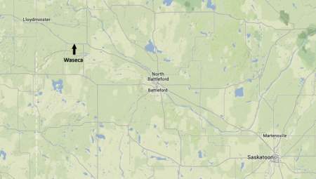Waseca is approximately 220 kilometres northwest of Saskatoon.