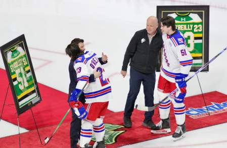 After a ceremony to honour the two former Knights before the drop of the puck, London got off to a fast start and piled up four shots on goal to Kitchener’s one shot through the opening minutes of the game.