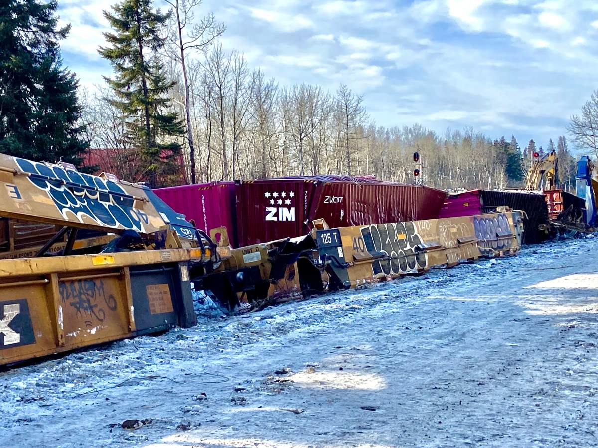 It’s not known what the train cars were carrying at the time, but Michnowski says there have been no reported leaks of dangerous goods, fires, injuries or other impacts on the public.