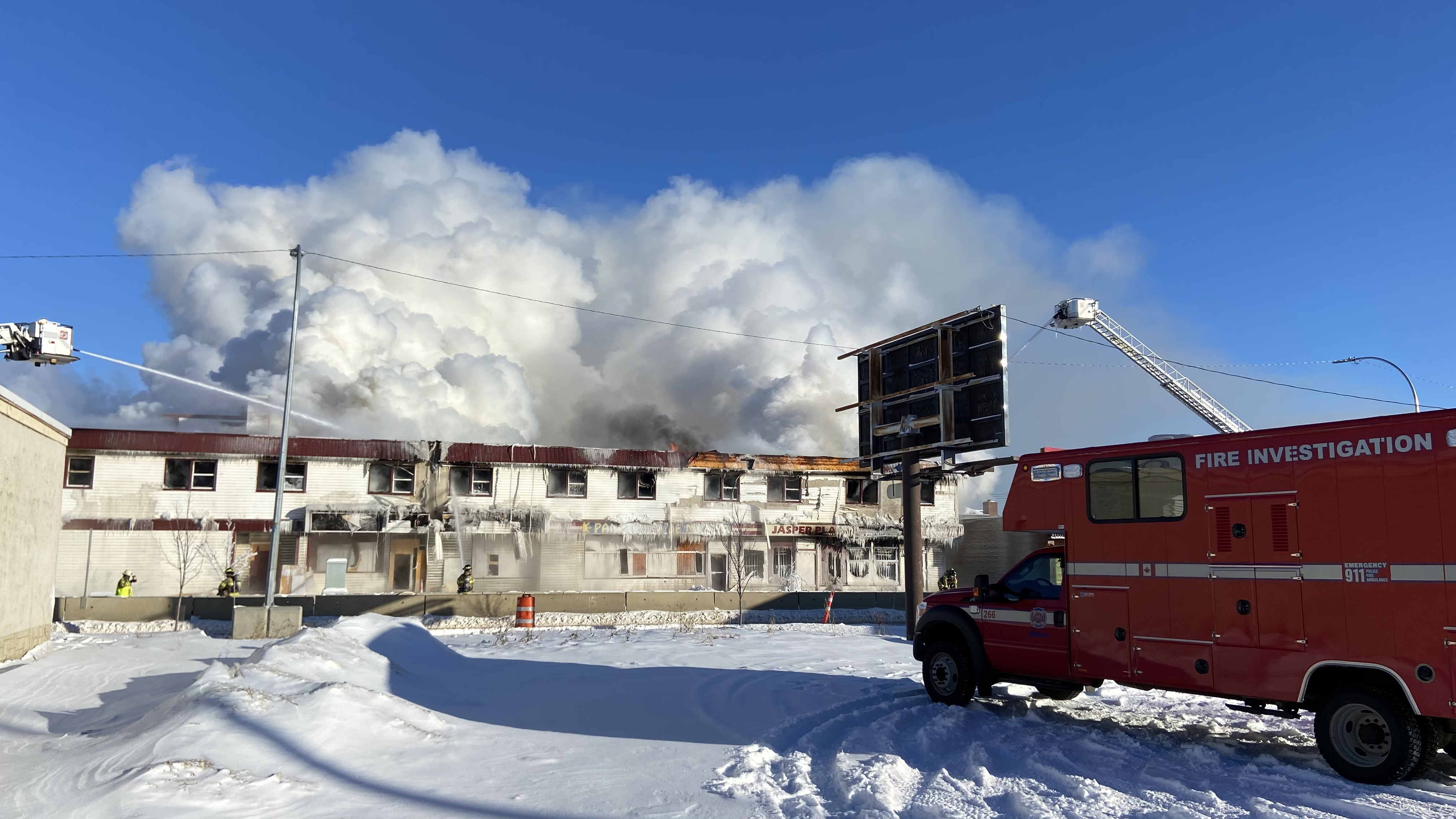 Edmonton fire crews were called out around 5 a.m. on Thursday to a blaze in the old Jasper Place Hotel, located at 15326 Stony Plain Rd.