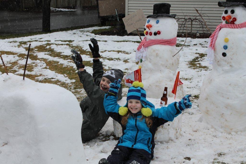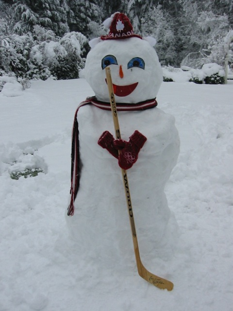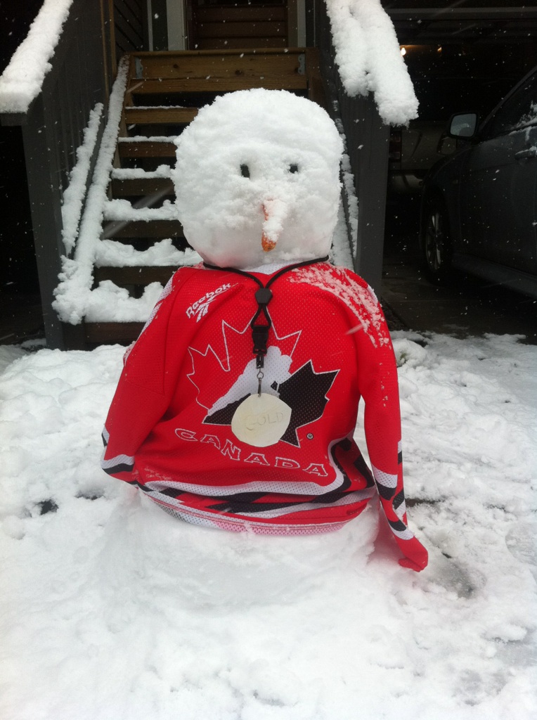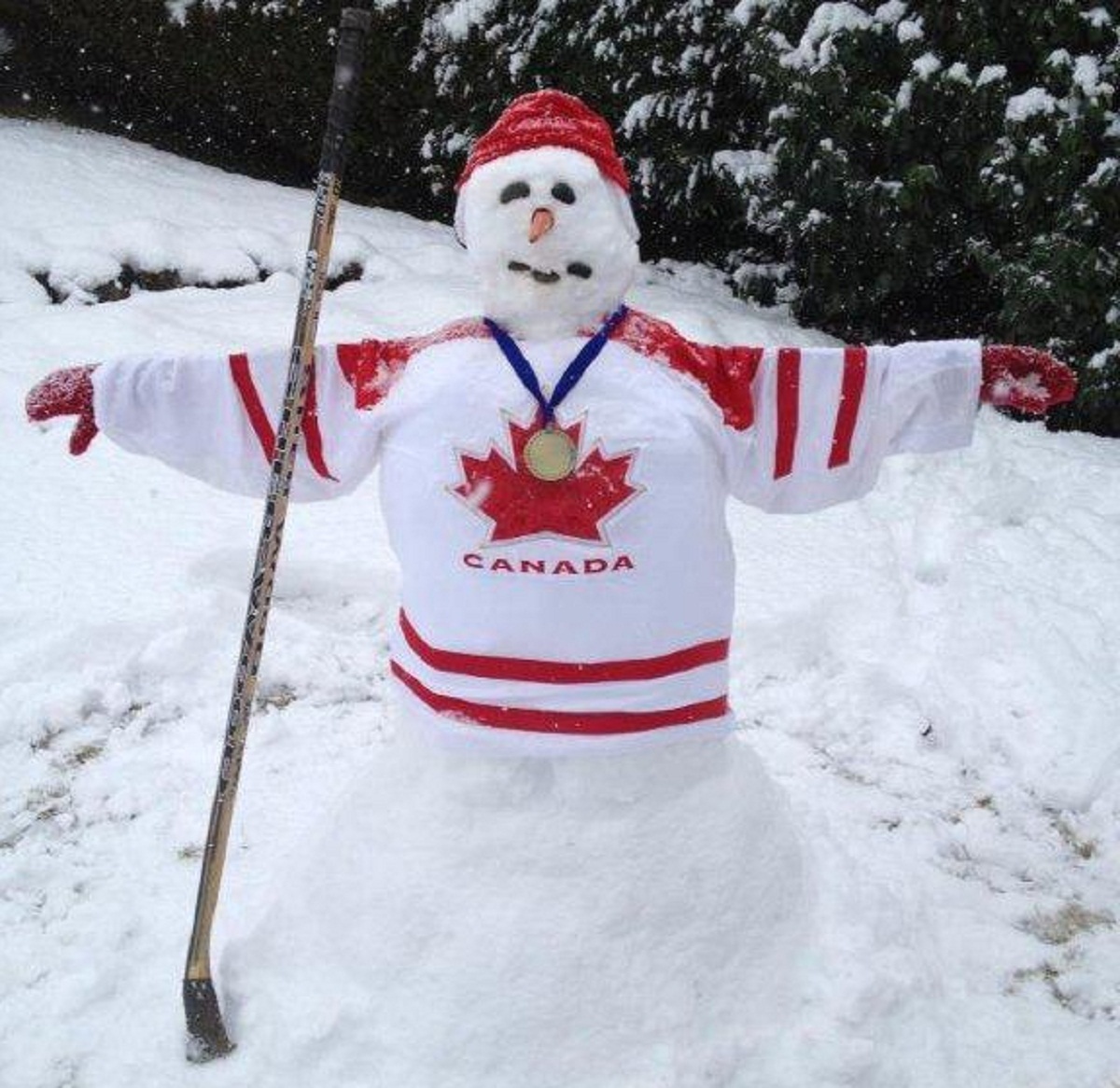 A number of people also decided to celebrate Canada’s wins in hockey with some specialized snowmen as well.
