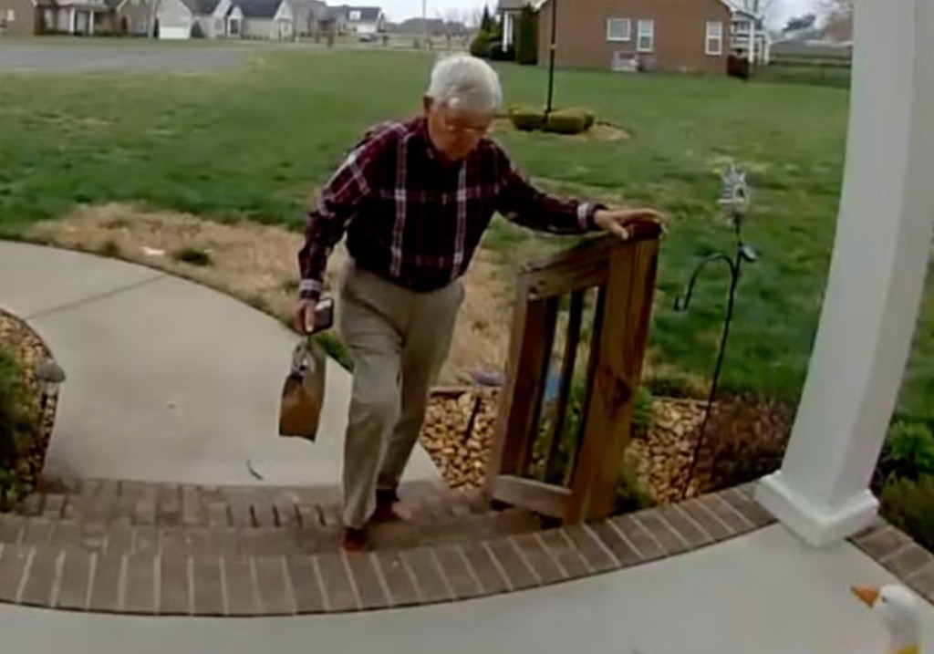 In the video shared by Smith, Pulley is captured on doorbell video delivering the order to her doorstep, slowly walking up the pathway towards her home, before hesitating for a brief moment in front of the steps that lead to her front porch. He carefully walks up the stairs and gingerly bends down to drop off Smith’s order.