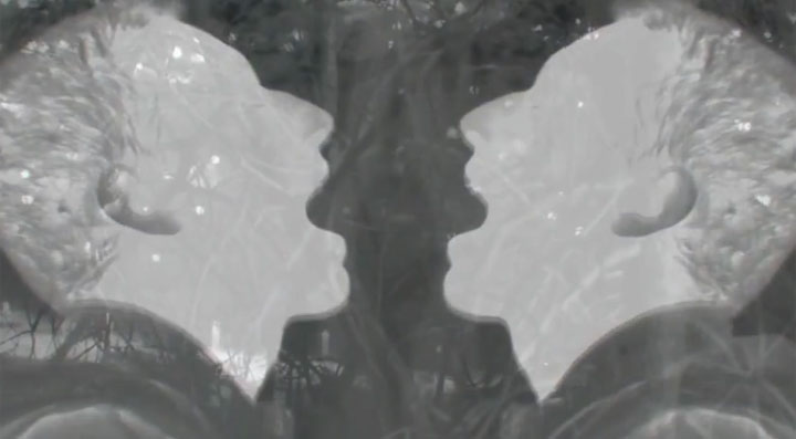 The video uses a night-vision effect as the band’s members roam through a forest.