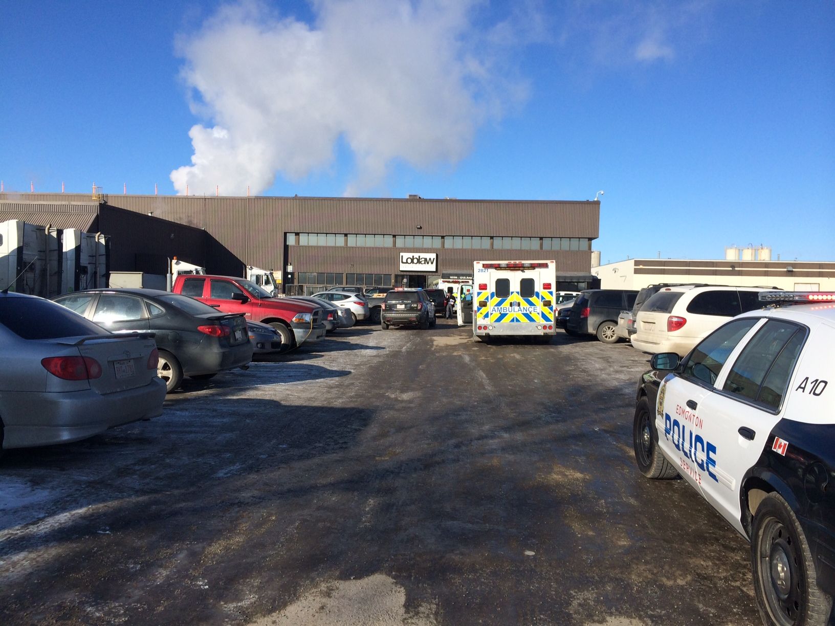 Dozens of officers were called to the Loblaw warehouse at 161 Street and 121 A Avenue just after 2:00 p.m.