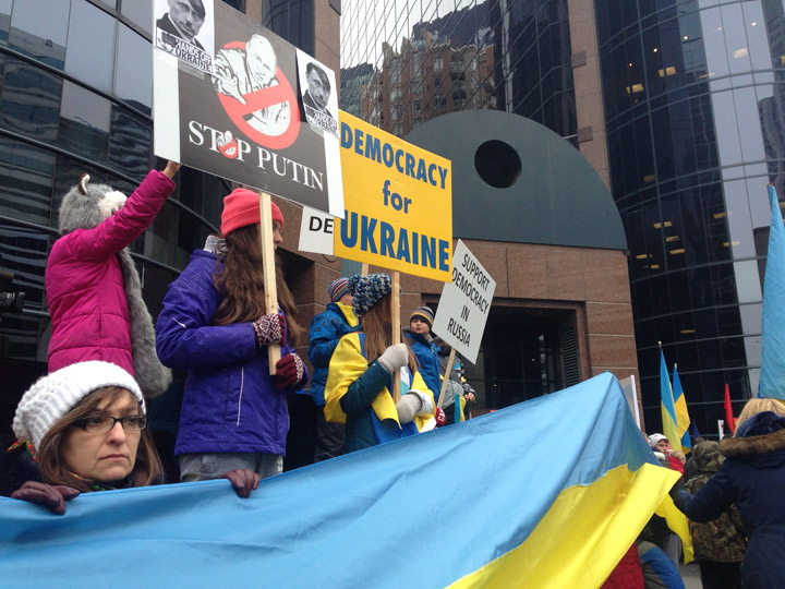 While politicians meet behind closed doors, civilian protests continue across the world – from major cities in eastern and southern Ukraine to demonstrations in Toronto and Ottawa.
