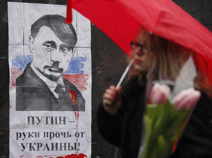 Rasmussen has said Russia’s military intervention in Ukraine is in violation of the U.N. charter and threatens peace and security in Europe. Russian President Vladimir Putin said Tuesday that Moscow reserves the right to use its military to protect Russians there but voiced hope it won’t need to do so.