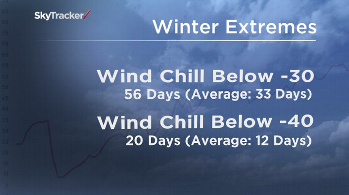 Saskatoon has seen 56 days this winter season with wind chill values below minus 30 when the usual is 33.