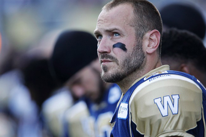 Buck Pierce speaks to the media about his new role with the Winnipeg Blue Bombers.