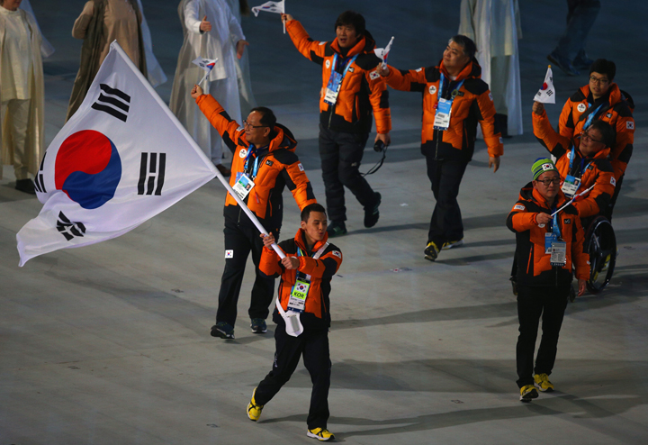 Wheelchair curler Sonja Gaudet acted as Canada’s flag-bearer for the opening ceremony.