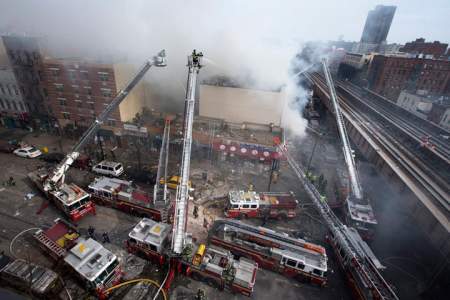 Over 250 fire fighters were on the scene, working to extinguish flames, carefully remove debris and continue to search for people potentially trapped in the rubble.