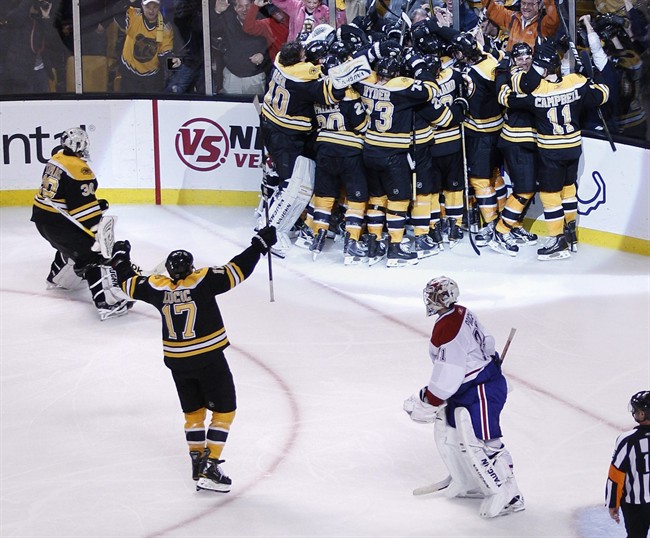 <p>BOSTON – The Boston Bruins lost a playoff series last year when they had a 3-0 lead. So a mere 3-2 edge over the Montreal Canadiens guarantees nothing.</p> <p>Coach Claude Julien knows how tough closing can be.</p> <p>”I think we experienced that last year,” he said after Boston’s 2-1, double-overtime victory Saturday night. “You don’t want to bring it up, but we know how hard it is. We’ve got to go to Montreal knowing we’ve got to be ready. Montreal will come out and play the game of their lives.”</p> <p>The Bruins won their second overtime game in three days when Nathan Horton scored at 9:03 of the second extra session.</p> <p>But they remember one of the darkest stretches in club history when they lost four straight games to the Philadelphia Flyers – and squandered a 3-0 lead in Game 7 – last year in the Eastern Conference semifinals.</p> <p>”We learned about last year you can’t take any lead for granted,” said Milan Lucic, who had seven shots after taking just five in the first four games.</p> <p>On the winning goal, Montreal goalie Carey Price stopped Andrew Ference’s wrist shot from 30 feet but couldn’t control the rebound. Horton put the puck into the open right side of the net for his second goal of the playoffs.</p> <p>”I saw the rebound come out,” Horton said. “It was like it was in slow motion. It was just sitting there.”</p> <p>The win was the first by the home team in the first-round series.</p> <p>”I felt confident,” Julien said. “I liked our composure in overtime. We were making some strong plays. We didn’t really panic.”</p> <p>The Bruins, who have won three straight games, can end the series Tuesday night in Montreal.</p> <p>”Playing at home Tuesday in front of our fans, hopefully that will make a difference,” Canadiens coach Jacques Martin said.</p> <p>In Game 4, also in Montreal, Boston won 5-4 when Michael Ryder scored at 1:59 of overtime after the Bruins overcame deficits of 1-0, 3-1 and 4-3.</p> <p>On Saturday, Horton came through in a well-played, tiring game.</p> <p>”I just saw a shot,” Price said. “It hit my pad … and they buried it.”</p> <p>Boston’s Tim Thomas made a brilliant save at 5:35 of the second overtime on a 2-on-1 Montreal break. Travis Moen passed from the left side across the slot to Brian Gionta, and Thomas slid across the crease to turn aside Gionta’s shot from five feet.</p> <p>”My thought was just trying to get it on the net and get it over him,” Gionta said. “He moves well side to side and he just read it.”</p> <p>At 8:08 of the first overtime, Price nearly gave the game to the Bruins when he whiffed as he attempted to clear the puck from the crease. He then fell backward on it as his mask fell off while Brad Marchand was just a few feet away.</p> <p>”We were getting very tired,” Marchand said. “Guys were starting to cramp up. I’m pretty tired right now but it was a pretty special feeling being out there, very intense.”</p> <p>Thomas made 44 saves, and Price stopped 49 shots.</p> <p>The Bruins are 0-26 in series they trailed 2-0. But the Canadiens have lost the last two series in which they won the first two games – in 1996 against the New York Rangers and in 2006 against the Carolina Hurricanes, who went on to win the Stanley Cup.</p> <p>After two scoreless periods, Marchand gave Boston the lead at 4:33 of the third period before Jeff Halpern tied it at 13:56.</p> <p>Marchand passed from behind Price’s left side across the crease. The puck hit Boston’s Patrice Bergeron and trickled back to Marchand, who put it in the open side of the net to the left of Price.</p> <p>Halpern scored with a short shot over Thomas’ right shoulder after taking a pass from Lars Eller from behind the net.</p> <p>There was plenty of tight checking and end-to-end action in the first two periods as the Bruins outshot the Canadiens 21-16.</p> <p>Montreal got a break about eight minutes in when Dennis Seidenberg’s pass from the right to left point intended for Zdeno Chara was stolen by Michael Cammalleri. He skated in ahead of the defence, but Thomas knocked his shot to the left of the crease. Tomas Plekanec got the puck and shot it toward the open right side where a sprawling Ryder swatted it away with his right glove.</p> <p>”It was sort of a 2-on-1, 3-on-1,” Ryder said. “I think Timmy was out of position and I just tried to get a glove on it.”</p> <p>Boston had the better opportunities for the rest of the period.</p> <p>Horton stole the puck behind the Montreal net and fed David Krejci out front, but Price made the save at 10:38. Then, with Montreal’s David Desharnais serving an interference penalty, Milan Lucic had a clear shot from five feet but put it right into Price’s pads.</p> <p>The Bruins had another opportunity early in the second period, but Marchand and Mark Recchi, both just in front of Price, couldn’t put the puck in at the 52-second mark.</p> <p>One of the Canadiens’ best chances of the period came at 10:59 when Plekanec fired a 10-footer into Thomas’ pads. The goaltender quickly looked behind to see if the puck went into the net but it stayed in his pads.</p> <p>NOTES: Boxer Micky Ward of Lowell, the subject of the movie “The Fighter” was in the crowd. … The teams played their first scoreless first period of the series. … The game was the third of this year’s NHL playoffs that lasted two overtimes. … Price allowed a total of one goal in the first two games in Boston. … The start of the second overtime was delayed as workmen cleared puddles from the ice.</p>