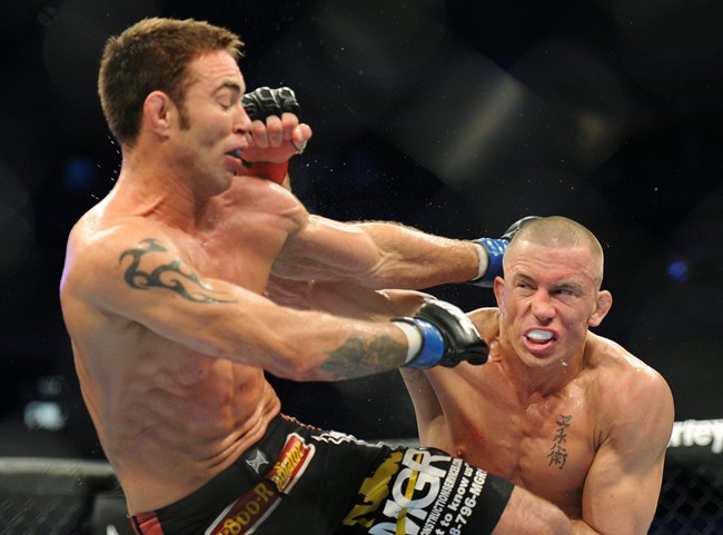 <p>TORONTO – Welterweight champion Georges St-Pierre used his standup superiority to win a unanimous decision over Jake Shields at UFC 129 on Saturday night in a fight that lacked fizz.</p> <p>The mixed martial arts victory was the ninth straight for the 29-year-old champion from Montreal, who came in as a 5-1 favourite in some quarters. Shields (26-5-1) saw the end of his 15-fight win streak that dated back to 2005.</p> <p>The bout was contested almost entirely on the feet, with St-Pierre (22-2) offering an array of exotic kicks when not sticking out his jab or launching an overhand right. He wanted no part of Shields in the clinch, where the American could try to get it down to the ground to use his jiu-jitsu.</p> <p>The 32-year-old California challenger had no answers for the more well-rounded St-Pierre in a title showdown that did not dazzle. But the champion looked like he had been in a fight and his performance will not answer critics who want him to finish fights.</p> <p>The judges scored it 50-45, 48-47, 48-47 for St-Pierre, who suffered an eye injury in the second round.</p> <p>”I can’t see with my left eye right now. I can see a blur,” he said</p> <p>St-Pierre, who went to hospital after the fight, did see an end to his string of consecutive rounds won at 33.</p> <p>In the co-main event before a UFC-record 55,724 at the Rogers Centre, featherweight champion Jose Aldo won a unanimous decision over a gutsy Mark (The Machine) Hominick of Thamesford, Ont.</p> <p>Former light-heavyweight champion Lyoto (The Dragon) Machida knocked out Randy (The Natural) Couture with a devastating front kick, ending the UFC’s Hall of Famer’s farewell fight at 1:05 of the second round.</p> <p>Hominick and Machida also went to hospital to be checked out after their fights.</p> <p>The crowd was chanting “GSP, GSP” before the champion entered. He entered the cage and reached out to Shields, who put his hand out in response.</p> <p>The former Strikeforce champion was soundly booed in contrast to St-Pierre’s ovation.</p> <p>The Rogers Centre crowd was a record for a North American mixed martial arts card.</p> <p>The fight bonuses were also a UFC record at $129,000, with Aldo and Hominick each receiving that amount for fight of the night.</p> <p>Like the UFC itself, the supersized Toronto show was big and loud. And ran smoothly.</p> <p>It also featured an impressive smorgasbord of knockouts and big finishes that lived up to the hype.</p> <p>Canadian fighters were 6-4 on the night.</p> <p>St-Pierre used his jab in a first round that saw Shields catch attempted kicks twice, but couldn’t pull the champion down.</p> <p>It was more of the same in the second but St-Pierre got Shields’ attention with a solid right to the head. He repeated that shot in the third and stuffed a Shields takedown. St-Pierre, his right eye showing damage, then dumped the challenger on his back as the round ended.</p> <p>St-Pierre started the fourth with another brief takedown, before settling into more striking. At one point, St-Pierre staggered Shields with a kick to the head and the challenger grabbed a leg for dear life but could not take the champion down.</p> <p>Both men were bloodied in the fourth and fifth.</p> <p>”His striking was much better than I thought,” St-Pierre said. “He closed my eyes.”</p> <p>St-Pierre looked to the clock in the fifth as blood tricked off a cut on his nose.</p> <p>Hominick (20-9) was game but outmatched for the first four rounds against Aldo and his face showed it, with cuts and a mouse the size of a muffin on his forehead. But he came on strong in the fifth round, battering the tired champion from above to the delight of the crowd.</p> <p>Aldo (19-1) won but the Brazilian looked human for the first time in a while. The judges scored it 48-45, 48-46, 49-46 for Aldo.</p> <p>”He’s a hell of a fighter,” Aldo said of Hominick.</p> <p>A smooth Aldo softened Hominick up with kicks and punches then took him down twice in the first round, doing damage from above.</p> <p>Hominick’s face was bloody in the second round as they stood and traded. Then Aldo took him down twice again.</p> <p>After some good striking exchanges, the third round turned ugly for Hominick as Aldo put him down with a left to the head and then laid into him from above. But Hominick survived. </p> <p>Aldo knocked Hominick down with a right in the fourth and attacked with elbows, causing a giant welt on the Canadian’s forehead that had the crowd groaning when it was shown on the video screens. The doctor came into the cage to have a look but let him continue.</p> <p>Hominick was examined again before the final round. He later thanked referee John McCarthy for not stopping the fight.</p> <p>Hominick, whose wife Ashley is due to give birth May 7, said in the cage afterwards: “I hope I didn’t put you into labour.”</p> <p>Aldo, who appeared gaunt at the weigh-in, said his weight cut was more complicated this time because he had put on extra muscle during a layoff extended by shoulder and back injuries.</p> <p>Hominick, with a Hamilton Tiger-Cats logo on his shorts, ran out into the home of the Argos to “Coming Home” by Diddy – Dirty Money.</p> <p>The 47-year-old Couture, a former multiple light-heavyweight and heavyweight title-holder, looked confident as he walked out to “Lunatic Fringe” by Canada’s Red Rider and chants of “Randy Randy.”</p> <p>But the 32-year-old Machida (17-2) proved too young and too quick, nailing the UFC Hall of Famer with punches and knees. Couture’s face was showing damage by the time the end came quickly and viciously.</p> <p>”He’s a hero,” Machida said of Couture, who for once looked outmatched.</p> <p>”This is it,” said Couture (19-11).</p> <p>Machida’s finish was reminiscent of the way middleweight champion Anderson Silva stopped Vitor Belfort at UFC 126. It earned Machida $129,000 for knockout of the night.</p> <p>UFC president Dana White sa