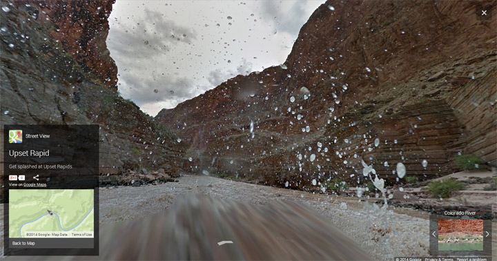 Google used two rosettes of cameras mounted on two rafts to capture the imagery in August and then stitched it together. The crew of nearly 20 people, including guides, spent eight mostly sunny days on the river, but got drenched by rain two of those days.