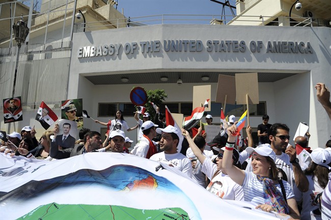 <p>BEIRUT – Syrian soldiers rolled into flash point cities in tanks and set up sand barriers topped with machine-guns Thursday, as President Bashar Assad’s deadly crackdown on dissent pulled the country deeper into international isolation.</p> <p>On the eve of another round of large protests, U.S. Secretary of State Hillary Rodham Clinton slammed the government’s assault on demonstrators and said the violence showed Assad is weak, though she stopped short of saying he must quit.</p> <p>”Treating one’s own people in this way is in fact a sign of remarkable weakness,” Clinton said during a trip to Greenland.</p> <p>Assad, 45, is determined to crush the two-month-old uprising despite international pressure and sanctions from Europe and the United States. His government has led one of the most brutal crackdowns in the wave of popular revolts sweeping the Arab world.</p> <p>Protests organizers were calling for more demonstrations Friday despite military operations and arrest raids meant to pre-empt the rallies.</p> <p>”Authorities are detaining any person who might demonstrate,” Rami Abdul-Rahman, director of the Syrian Observatory for Human Rights, told The Associated Press.</p> <p>In the northern city of Deir el-Zor, authorities placed cameras inside and outside the Osman bin Afan mosque, where many worshippers have been demonstrating after Friday’s Muslim prayer services, he said.</p> <p>Abdul-Rahman added that many former detainees were forced to sign documents saying that they were not subjected to torture and that they will not take part in future “riots.”</p> <p>A Western diplomat said 2,000 people have been detailed over the past two weeks, with a total of around 8,000 since the Syrian government launched its crackdown. The official, who demanded anonymity to share assessments of the situation in Syria, said Western nations believed that between 600 and 800 people have been killed so far.</p> <p>A video dated April 27 in the southern city of Daraa emerged Thursday showing a sniper shooting two people on a motorbike, then preventing residents from rescuing them or getting close.</p> <p>People in the street could be heard screaming “Traitors!” at the security forces.</p> <p>Also Thursday, Syrian soldiers and tanks surrounded the city of Hama, which President Assad’s father laid waste to in 1982 to stamp out an earlier uprising, an activist said. Forces also used clubs to disperse 2,000 demonstrators on a northern university campus on Wednesday night.</p> <p>In the central city of Homs, a resident said soldiers set up sand barriers with machine-guns perched on top. He added that three tanks were still in the area, despite a report by the private daily Al-Watan that said the army has pulled out of the city after completing its mission.</p> <p>”It seems they are getting ready for tomorrow,” the resident said.</p> <p>Most witnesses contacted by The Associated Press spoke on condition that their names not be published out of fear for their personal safety. The government has imposed a media blackout, refusing to let most journalists in and restricting access to trouble spots.</p> <p>The revolt was touched off in mid-March by the arrest of teenagers who scrawled anti-regime graffiti on a wall. Since then, the protests have spread nationwide and the death toll already has exceeded those seen during the uprisings in Yemen and Tunisia.</p> <p>The government’s bloody crackdown has increased in intensity in recent days. The army shelled residential areas in central and southern Syria on Wednesday, killing 19 people, a human rights group said.</p> <p>The shelling of neighbourhoods evoked memories of Assad’s father and predecessor, Hafez, whose most notorious act was the shelling of Hama in 1982.</p> <p>He levelled the city to crush a Sunni uprising there, killing 10,000 to 25,000 people, according to Amnesty International estimates. Conflicting figures exist and Syria has made no official estimate.</p> <p>Al-Watan newspaper reported Thursday that Assad met for four hours with a delegation of Sunni clerics from Hama. It said the clerics asked the president to solve some problems pending since 1982, such as people who have been living in exile since then.</p> <p>”President Assad accepted to study the case as long as it includes people who are known to be loyal to the nation,” the paper said.</p> <p>Since the uprising began, authorities have been making announcements about reforms on Thursdays in an attempt to head off protests on Friday.</p> <p>This week was no different: The state-run news agency, SANA, said Prime Minister Adel Safar introduced a new program to employ 10,000 university graduates annually at government institutions.</p> <p>Unemployment in Syria stands at about 20 per cent.</p> <p>In Washington, State Department spokesman Mark Toner called the Syrian attacks “barbaric,” adding, “We don’t throw the word ‘barbaric’ around here very often.”</p> <p>Officials in the Obama administration, which had sought to engage Syria after it was shunned under former President George W. Bush, said Tuesday the U.S. is edging closer to calling for an end to the long rule of the Assad family.</p> <p>The officials said the first step would be to say for the first time that Assad has forfeited his legitimacy to rule, a major policy shift.</p> <p>Clinton repeated U.S. denunciations of the crackdown on Thursday and said Syrian authorities “engage in unlawful detention, torture, and the denial of medical care to wounded persons.”</p> <p>On Friday, Australian Foreign Minister Kevin Rudd said his government is ramping up targeted financial sanctions against key regime figures responsible for human rights abuses and is also imposing an embargo on arms and other equipment used for internal repression.</p> <p>___</p> <p>Associated Press writers Bradley Klapper in Nuuk, Greenland, and David Stringer in London contributed to this report.</p> <p>___</p> <p>Basse