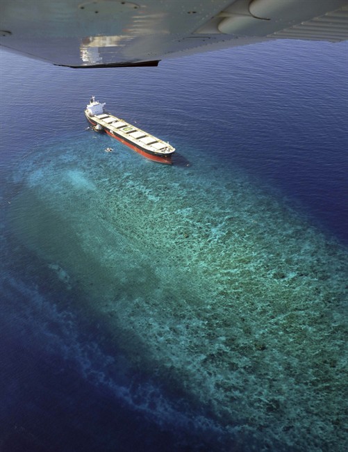 <p>MANILA, Philippines – A ship loaded with coal has run aground and destroyed an portion of reef the size of about seven basketball courts in the southern Philippines, officials said Thursday.</p> <p>The Panamanian-registered MV Double Prosperity has been stuck on the Bakud reef in Sarangani Bay since Sunday, said Sarangani provincial environment officer Eduardo Saladero.</p> <p>The ship was headed to India from Australia carrying 65,000 tons of coal when it ran aground about 625 miles (1,000 kilometres) south of Manila, Coast guard spokesman Lt. Cmdr. Algier Ricafrente.</p> <p>Provincial Gov. Migs Dominguez was quoted in local reports as saying that he suspected the crew sailed close to shore to get a better television signal to watch Filipino boxer Manny Pacquiao’s 12-round victory against Sugar Shane Mosley in Las Vegas.</p> <p>All 21 crew aboard the ship were Filipino, and Sarangani is Pacquiao’s home province and he is also its lone congressman.</p> <p>Ricafrente said an investigation has established that the ship’s crew miscalculated it’s path and sailed into shallow waters, destroying nearly 32,300 square feet (3,000 square meters) of coral.</p>