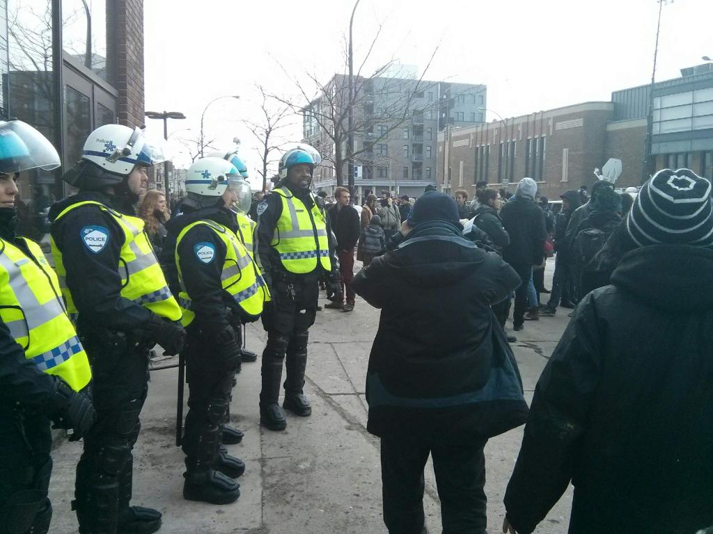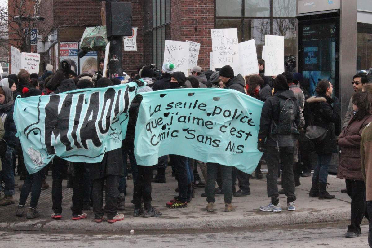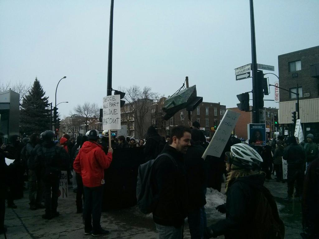 Unlike most years, protesters did not demonstrate downtown but were at the corner of Jean -Talon and Chateaubriand.