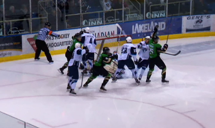 Nick McBride made 18 saves for the Raiders. Troy Trombley stopped 31-of-38 for Saskatoon.