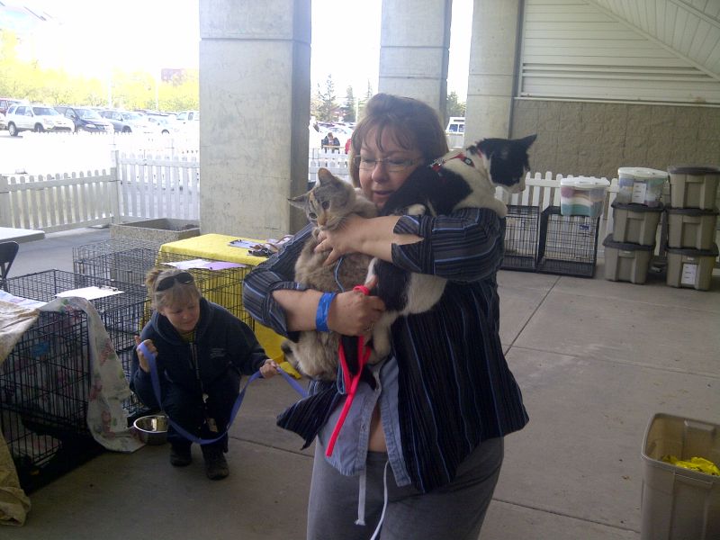 On Monday afternoon, McDonald, along with staff and volunteers, assembled 20 or so cages outside Edmonton’s Northlands’ Expo Centre, the overflow site for bus loads of Slave Lake families displaced by a massive fire. Since animals aren’t allowed inside, McDonald expects up to 200 dogs, cats, and guinea pigs will eventually be housed in cages outside.