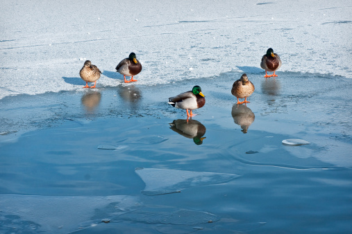 Most of the dead ducks seen in the upstate New York are red-breasted mergansers, which breed in northern Canada and Alaska and come south for the winter to the Great Lakes region. In most years, there are periods of freezing and thawing, providing enough breaks in the ice for them to dive for minnows.