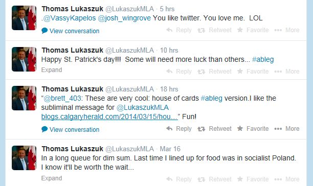 Former Deputy Premier Thomas Lukaszuk- now minister of jobs, skills, training and labour – sent out a timely tweet Monday.