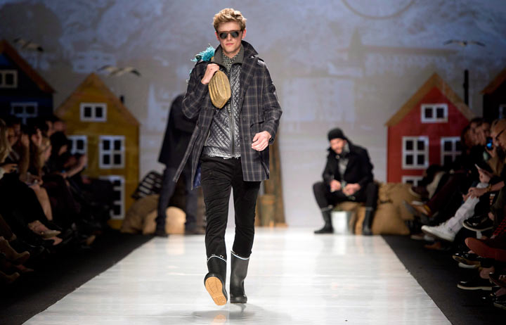 The soft, richly textured fabric served as a centrepiece in the line, with jackets and drawstring pants among the garments in the range fashioned from the material. The collection unveiled Thursday at Toronto’s World MasterCard Fashion Week also included dual-toned turtlenecks, denim jackets, shawl collar cardigans and slim-fitting cargo pants, each showcasing the label’s interpretation of casual seaport style.