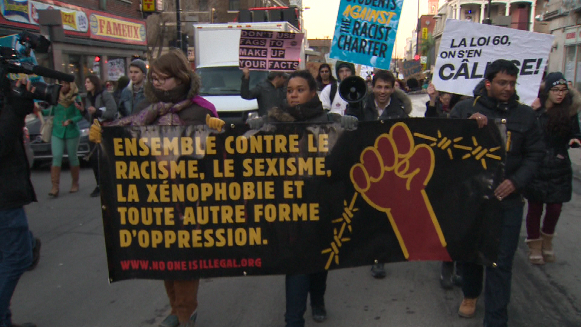 MONTREAL- Several hundred people took to the streets of Montreal Friday to denounce the charter of Quebec values.