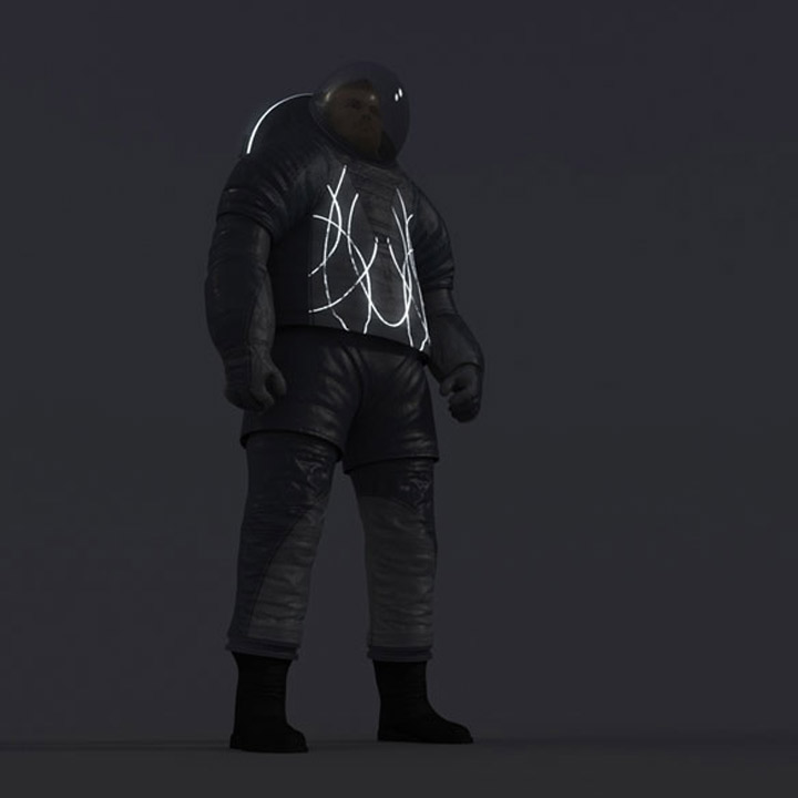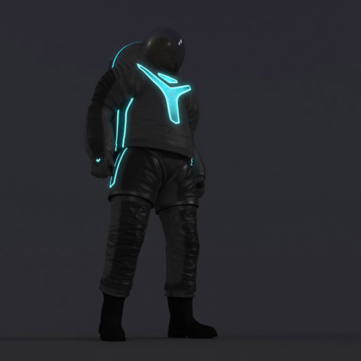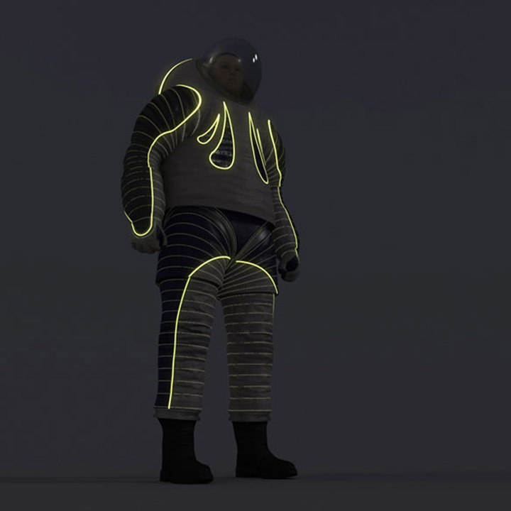“Technology” pays homage to the progress that has been made in space suit design, while incorporating ideas for the future of the suit. The design is much more industrial thanks to its electroluminescent wire designs and exposed rotating bearings.