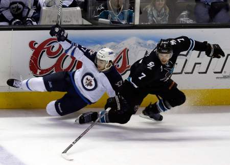 NOTES: Thornton became the 100th player to play in 1,200 career NHL games. … Former Sharks F Devin Setoguchi was a healthy scratch for the Jets. … San Jose recalled F Freddie Hamilton from Worcester of the AHL to replace F Adam Burish, who had surgery on two broken fingers on his left hand.