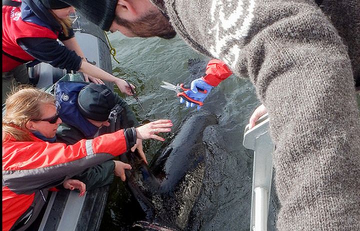 Members of the public are being told not to try and disentangle marine mammals themselves.