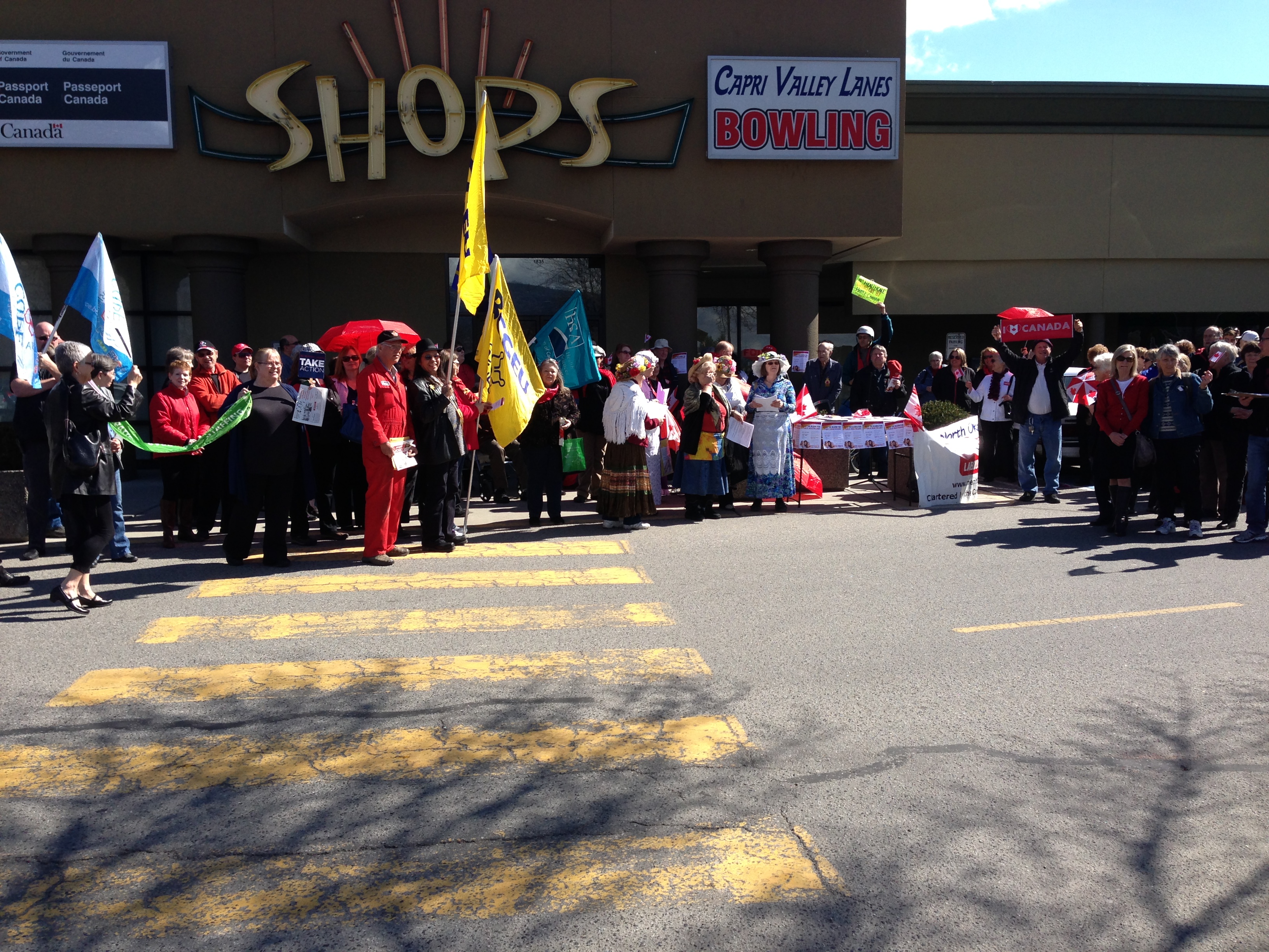 Kelowna was one of 42 communities across Canada to take part in a day of action protest surrounding healthcare. Around 100 people gathered outside MP Ron Cannan’s office today.