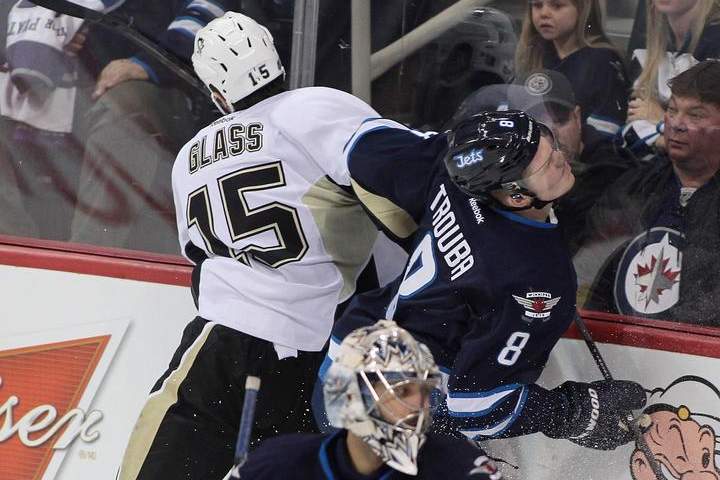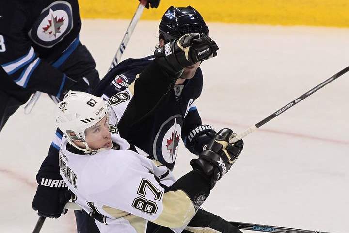 Jets defenceman Mark Stuart was in the penalty box for both of Pittsburgh’s power-play goals.