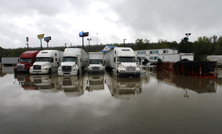 Dozens of cars had water up to their roofs. Rescue workers wearing life jackets waded through muddy water nearly to their chests to reach stranded residents. Hundreds of people in mobile homes on higher ground were isolated because water covered the only entrance to the complex.