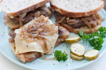GRILLED PATTY MELT WITH BALSAMIC CARAMELIZED ONIONS