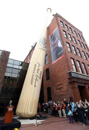 At the downtown Slugger Museum, visitors can stroll through the main lobby for free. The lobby’s features include the Signature Wall – emblazoned with the signatures of more than 8,000 players who signed contracts to use Louisville Slugger bats. Visitors can grip replica bats used by some of the game’s greatest sluggers. Youngsters can climb on a ball and glove sculpture made of Kentucky limestone. Hovering outside is one of the city’s most popular landmarks – a 120-foot-tall (37-meter-high) bat made of steel and hand-painted to resemble wood.
