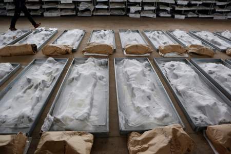 Here, at the Sejkovaca Identification Center, they bring the families in one at a time, where they are faced with bodies placed on shelves, preserved in salt and covered in plastic. Some of the corpses are only partially decomposed, a result of soil heavy in lime.