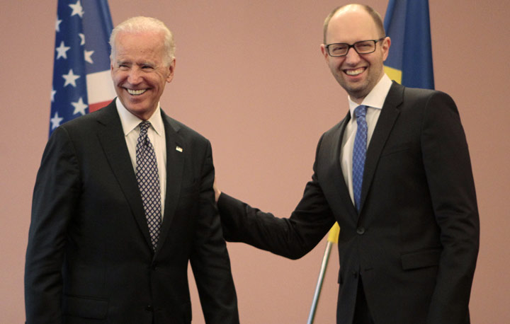 In the most high-level visit of a U.S. official since the crisis erupted, Biden met privately with Yatsenyuk and acting Ukrainian President Oleksandr Turchynov. He also met with democracy activists and spoke to TV cameras to tell the people of eastern Ukraine he had urged the nation’s leaders to keep reaching out to them.