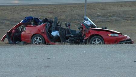 The crash happened around 5:15 p.m. by the south entrance to Martensville, Sask. after a Grand Prix apparently crossed the highway into the northbound lane where it was struck by a northbound Windstar.