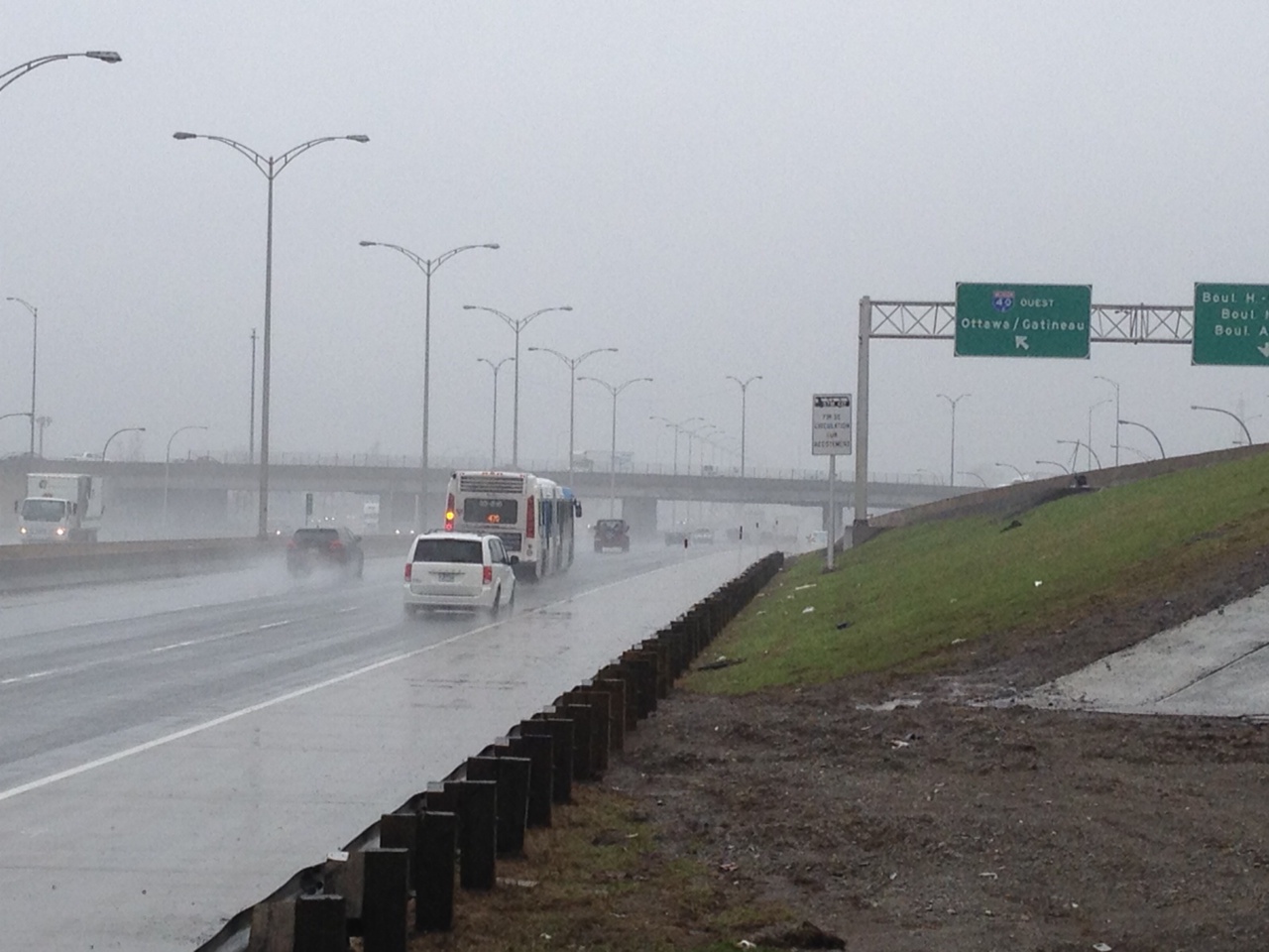 Montreal’s transit authority (the STM), now allows bus numbers 72, 220, 470 and 475 to use the shoulders on certain part of the highway between Cavendish Boulevard in the St-Laurent borough and St. Charles Boulevard in Kirkland.