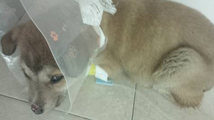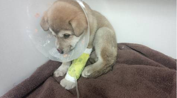 The puppy was found with a severed nose and tail and was suffering from roundworms. He’s also tested positive for Parvovirus, a high contagious and often fatal condition that spreads through contact with dog feces.