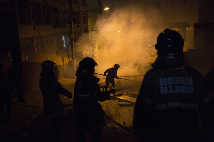 Following the discovery of the body, angry young men began lighting fires throughout the slum and tossing homemade explosives, bottles and other objects down onto Copacabana’s main avenues. Elite police units entered the slum, and at least three prolonged exchanges of gunfire were heard, presumably between officers and the drug gang members who continue to maintain a presence in the shantytown.