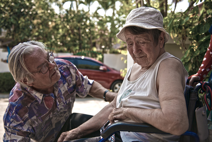 In Chiang Mai, Thailand, our camera captures an excruciating moment of decision for one Swiss visitor. He agonizes over whether or not to leave his wife of 41 years behind to live out the rest of her days in a care facility without locks or sedatives rather than in a facility in Switzerland that costs three times as much.
