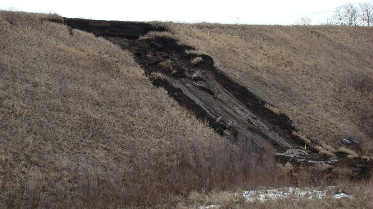 An embankment holding back water on a tributary of Birdtail Creek has started to fail and a large surge of water is expected to flow quickly down the creek, affecting nearby communities.