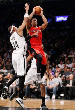 NEW YORK – DeMar DeRozan scored 24 points as the beaten-up Toronto Raptors tied their playoff series with the Brooklyn Nets with a 87-79 victory Sunday.